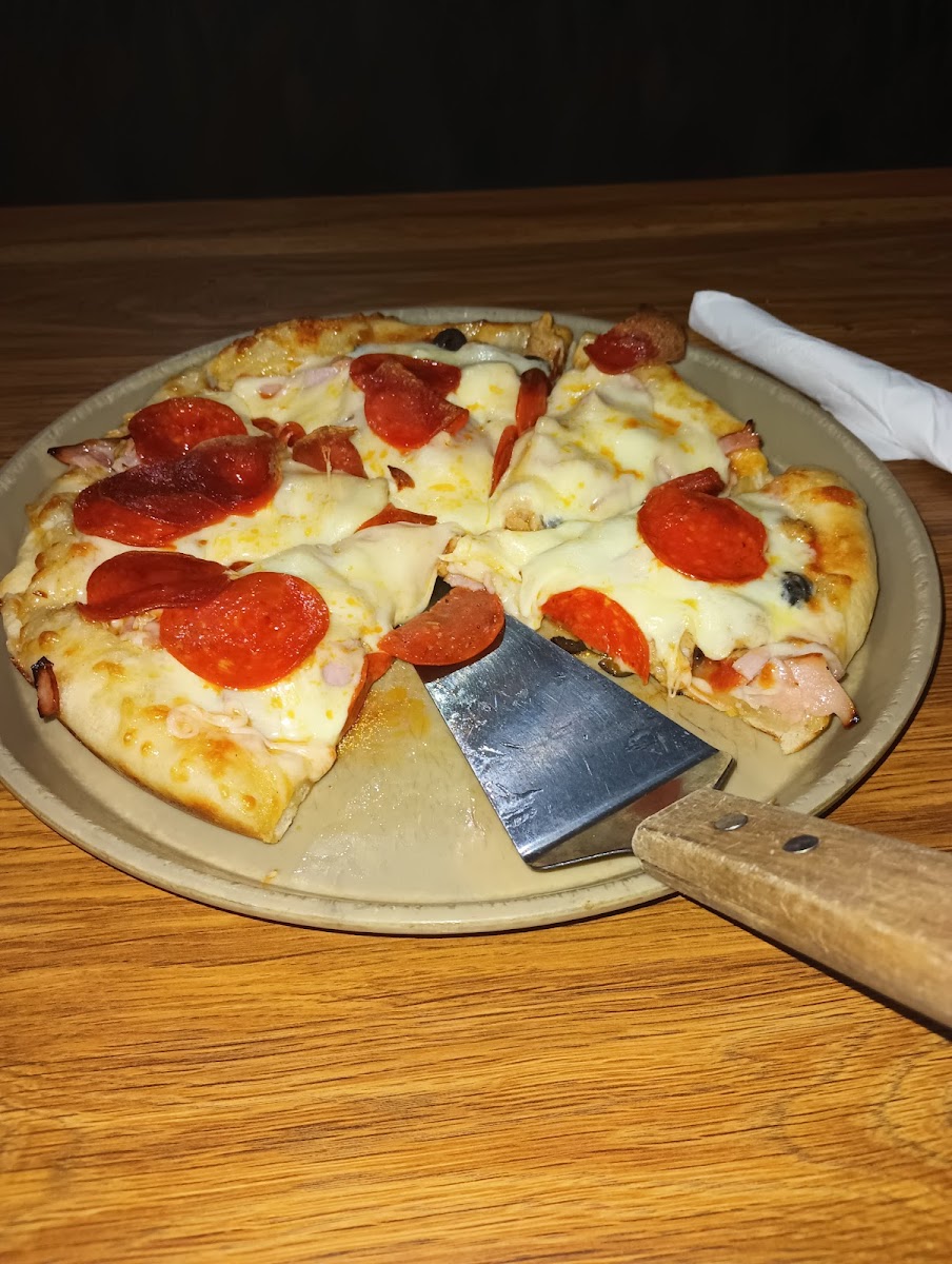 Ordered a medium Hawaiian, medium pepperoni and an order of fettuccine alfredo. All of it was very delicious. It’s been a few years since I’ve had it and I don’t know why it took me so long to come back. My one and only complaint is the size of the pizzas. The mediums are like smalls. Will I buy again? Heck yeah I will!